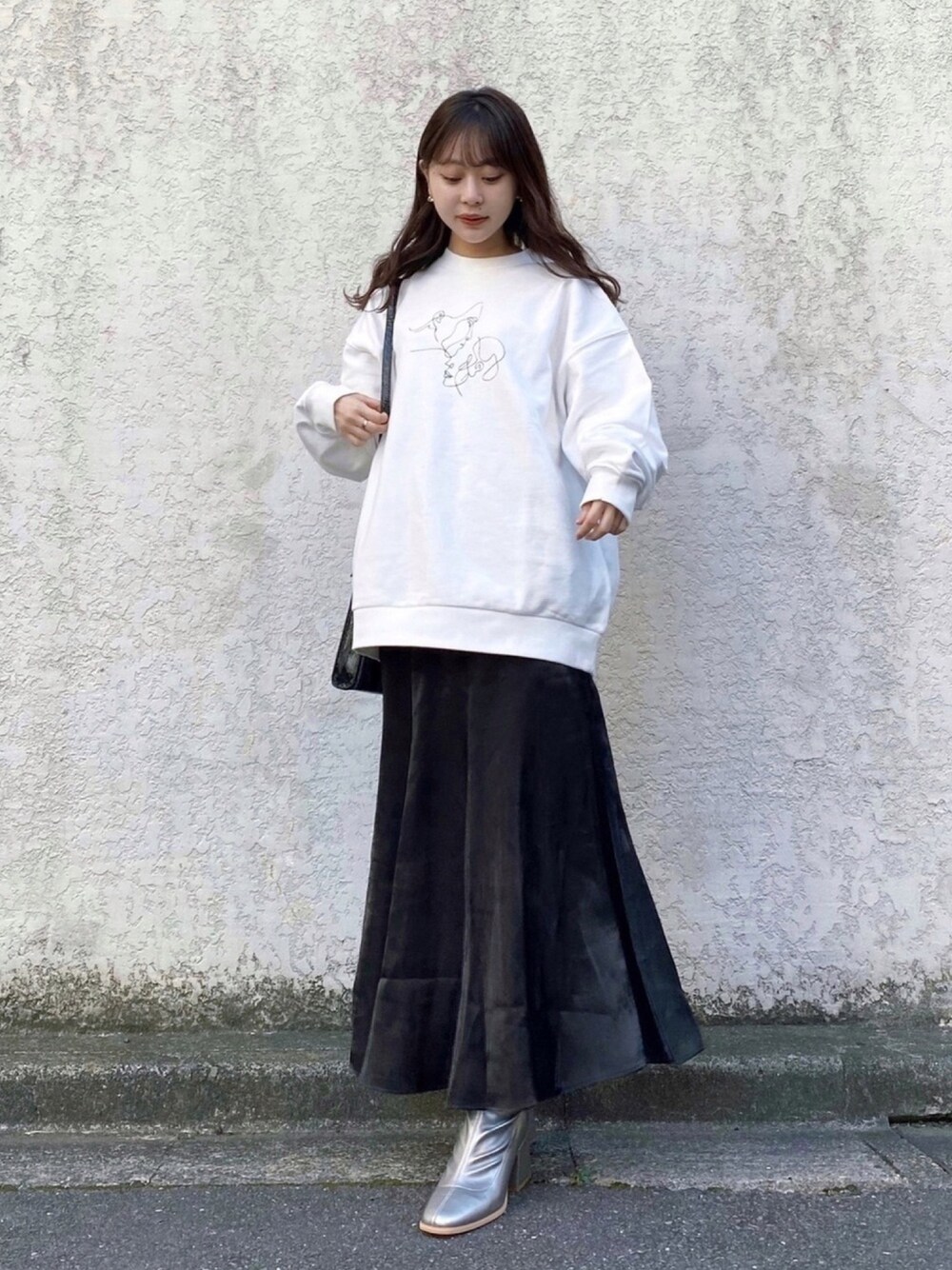 ゆるゆるなスタイリング! この日は中に着込んで、スウェット1枚♡ やっぱりストレッチブーツ履きやすい...! このくらいのヒールが1番歩きやすくて好き。 そして新色のブロンズは中々ないカラーで可愛い! モノトーンコーデの差し色にぴったり♡