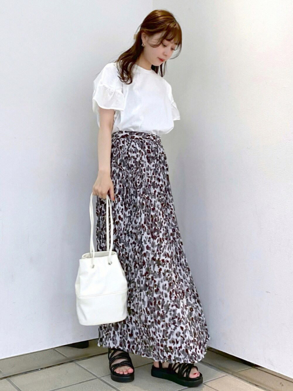 シンプルカジュアルコーデ♡ フリルのtシャツが可愛い! Instagram @haruhimaru_
