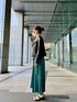 🍉☀️春・夏コーデ☀️🍉 可愛いロゴTとレザージャケットの甘辛mixコーデ☺️ グリーンのプリーツスカートはスリットが入っているので、程よく足首が見え大人っぽくしてくれるそんなアイテム💗