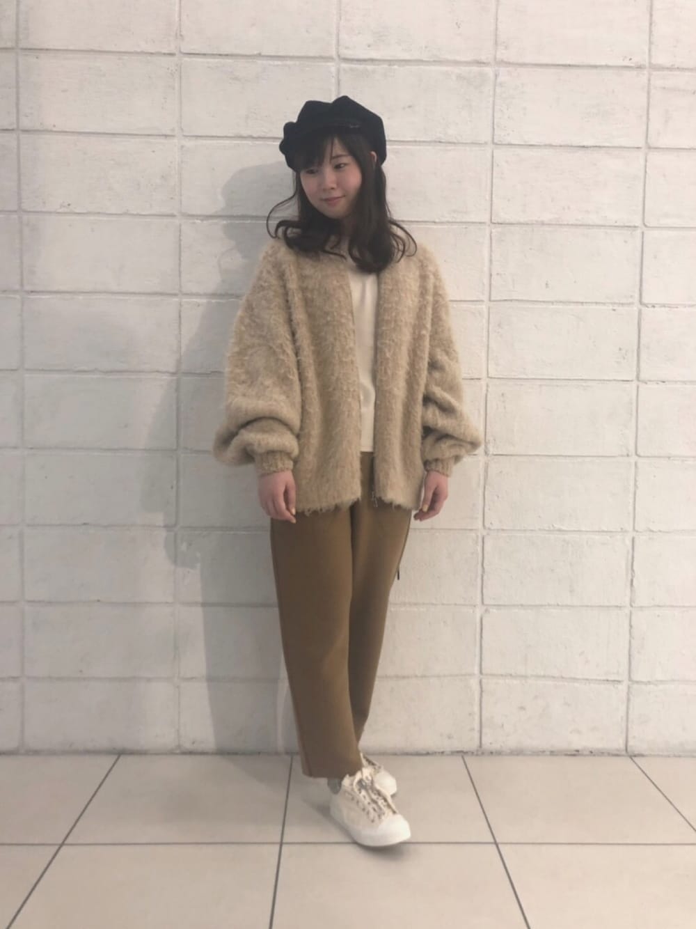 見た目に反しとても軽くてあたたかいニットブルゾンなので、着心地抜群なアイテムです!インナーのカットソーやスニーカーなど、シンプルでカジュアルなアイテムでも、女性らしさが出ます。