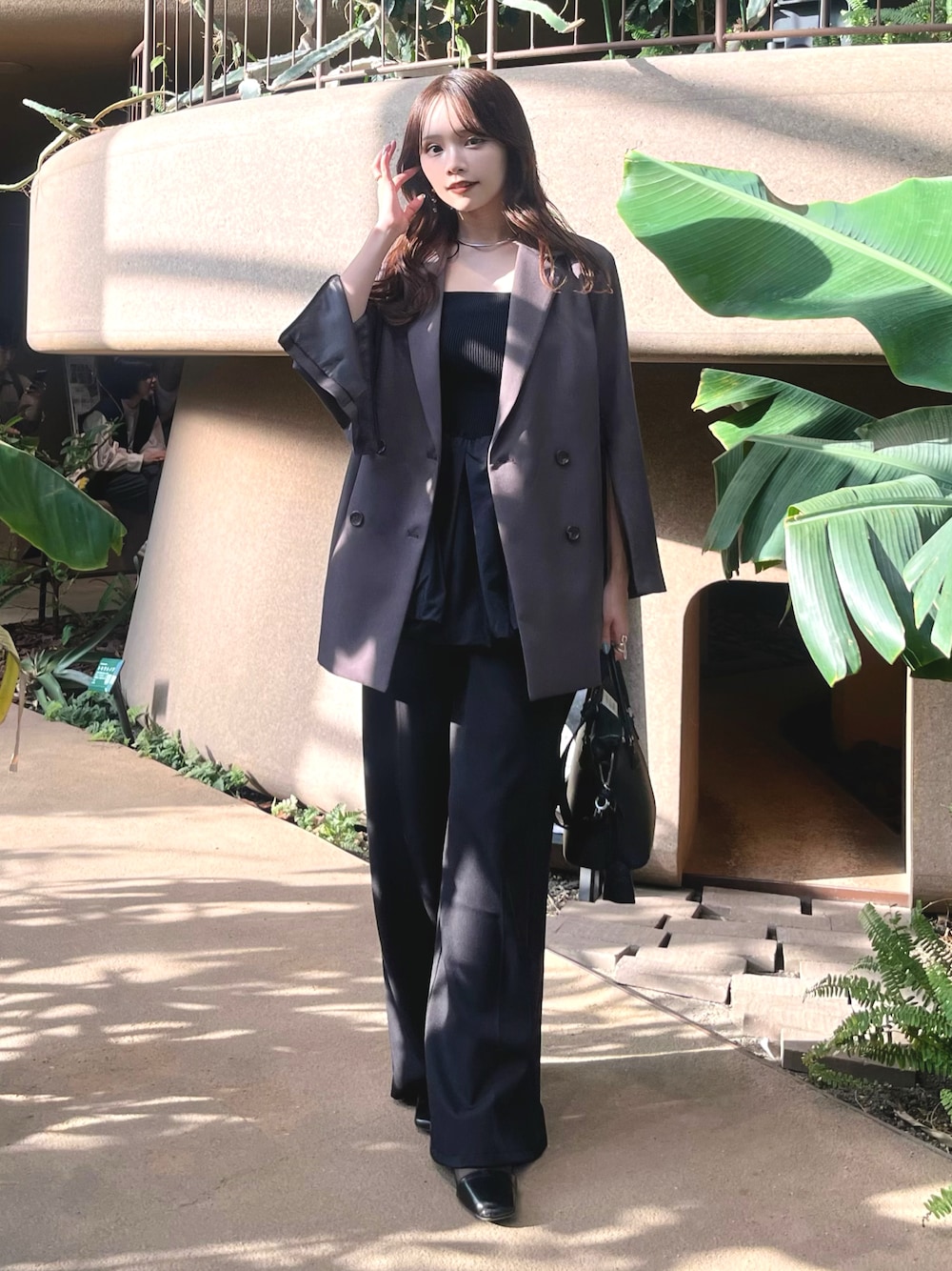 Instagram→haruka061444 キレイめパンツスタイル! 渋谷区ふれあい植物センター行った時の🌿 原宿の野外広告の自分を見に行った🫶🏻