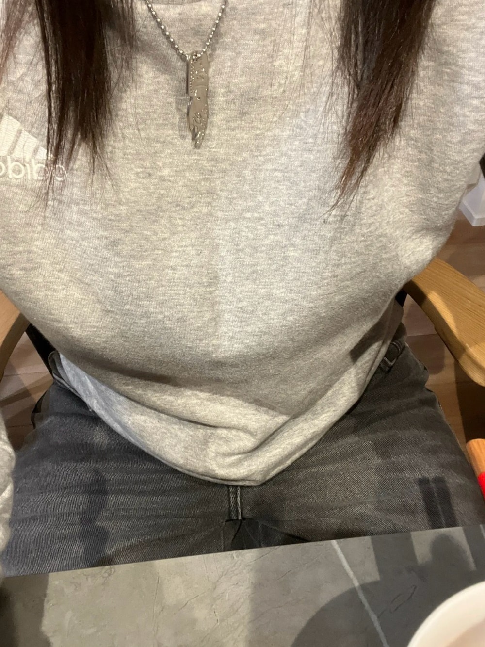 adidasのスウェットは裏起毛で暖かい!! アクセサリーでパジャマ感↓