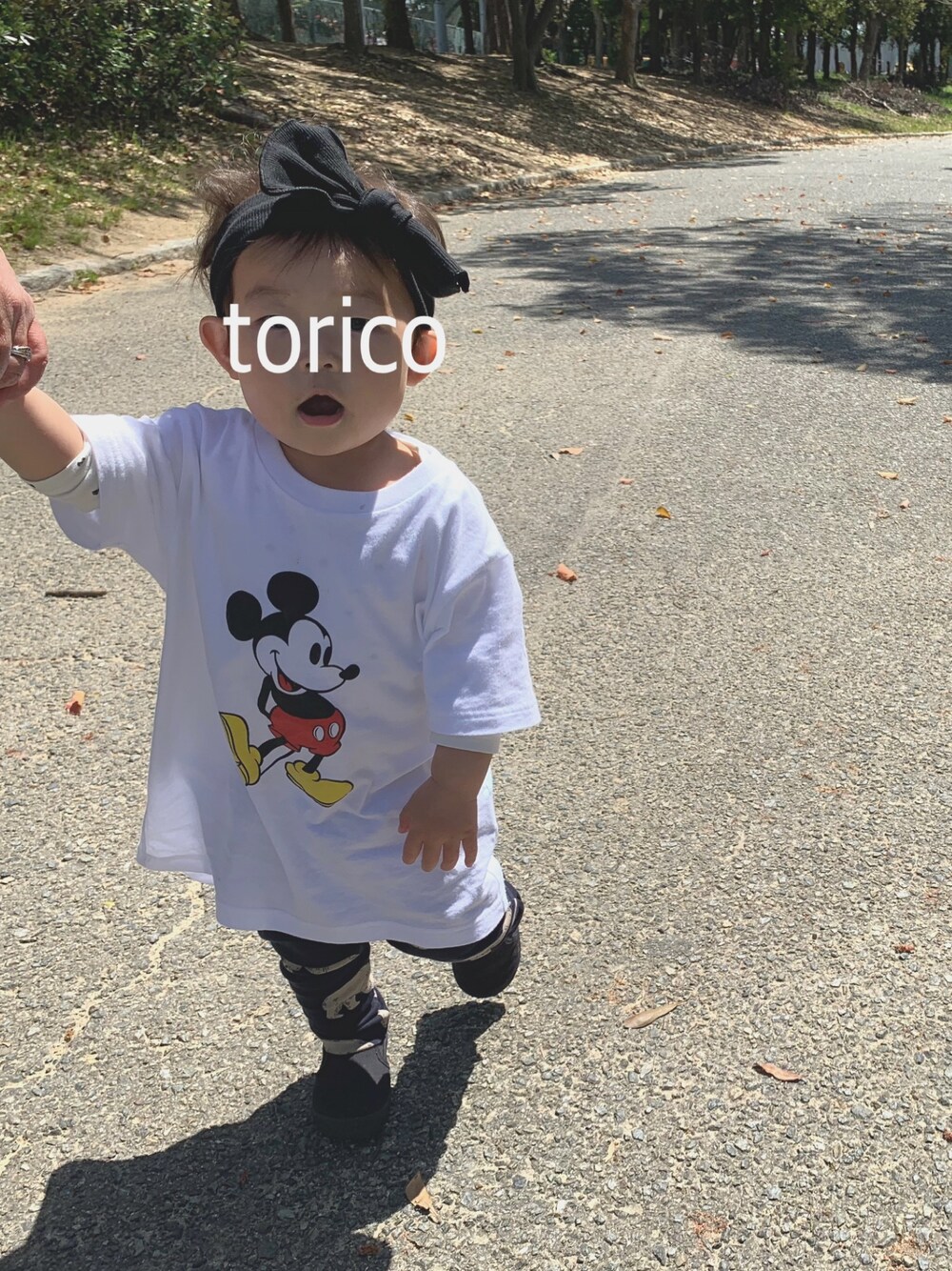 にぃにのミッキーTシャツ着る‼️ って朝から娘と小競り合い🤷🏻♀️👼🏻
