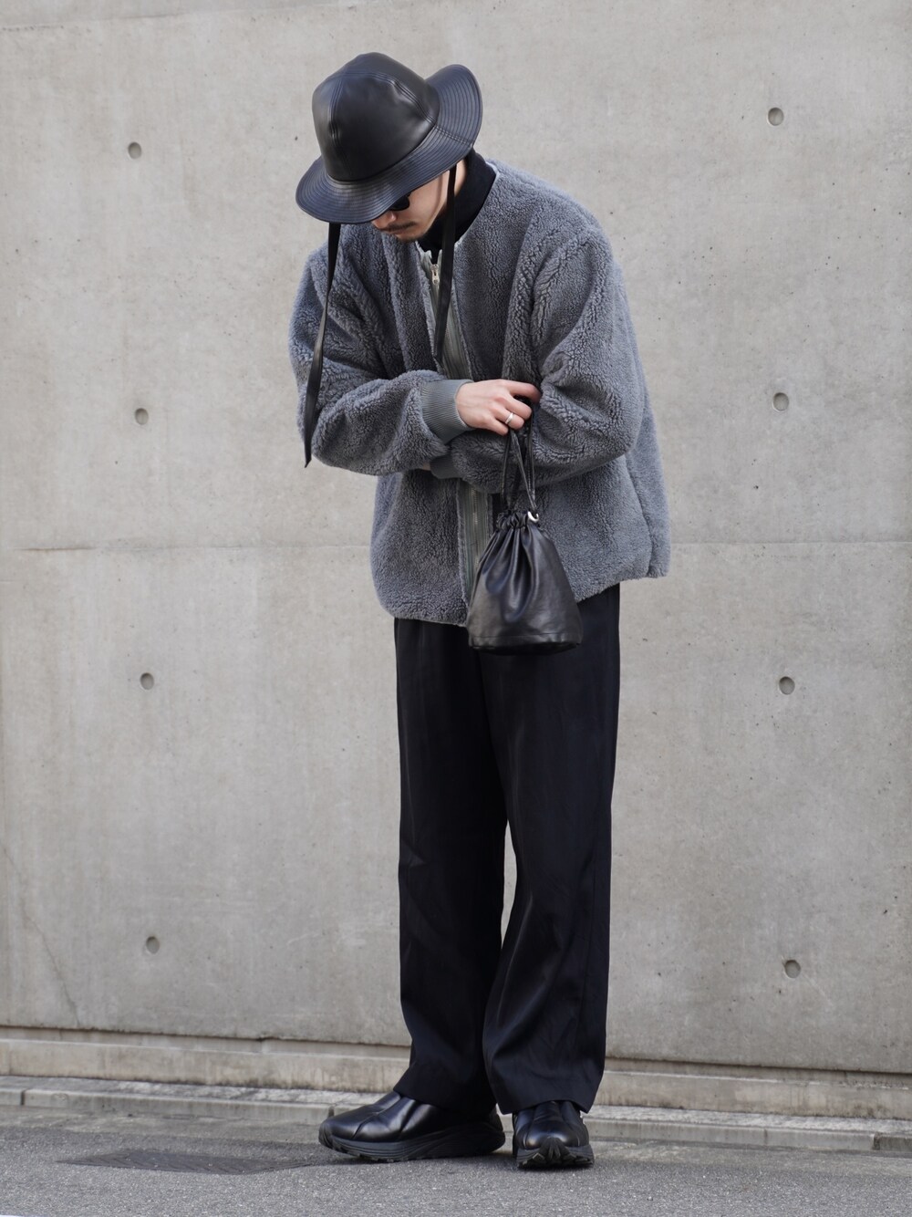 じーたーのショルダーバッグ「【WEARISTA じーたー×DEVICE コラボ】Rename ソフトフェイクレザー 巾着 トート ショルダーバッグ」を使ったコーディネート