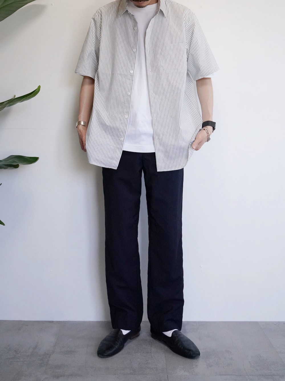 シンプル大人カジュアルコーデ🧔♂️ 今日はナノユニバースのストライプシャツをベースにコーディネートしました! 半袖シャツはこれからの季節にバッチリのアイテムです👌