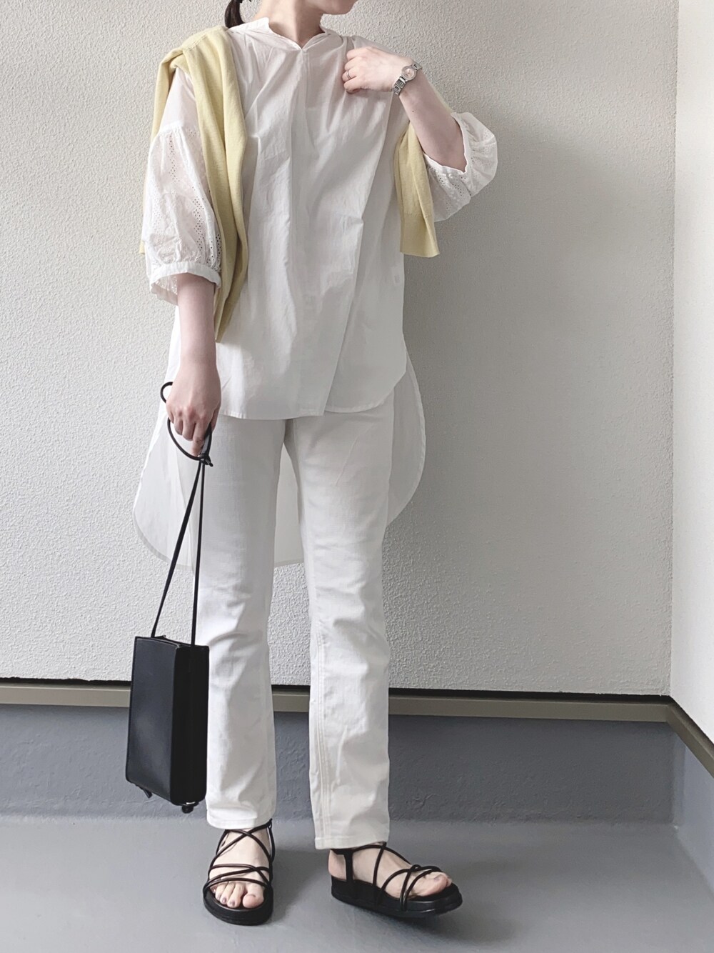 haruのシャツ/ブラウス「七分袖刺繍スキッパーチュニック」を使ったコーディネート