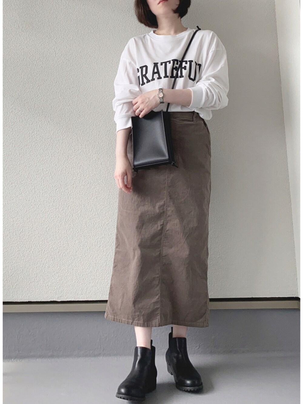 ご覧いただきありがとうございます! ロゴTとコーデュロイスカートでシンプルコーデ🤍🖤🤎 いいね、お気に入り、フォロー、フォルダインとても嬉しいです♬ いつもありがとうございます😊
