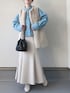 ご覧いただきありがとうございます😊 ブルーシャツで差し色コーデ🫐 いいね、お気に入り、フォロー、フォルダインとても励みになります✨ いつもありがとうございます☺️