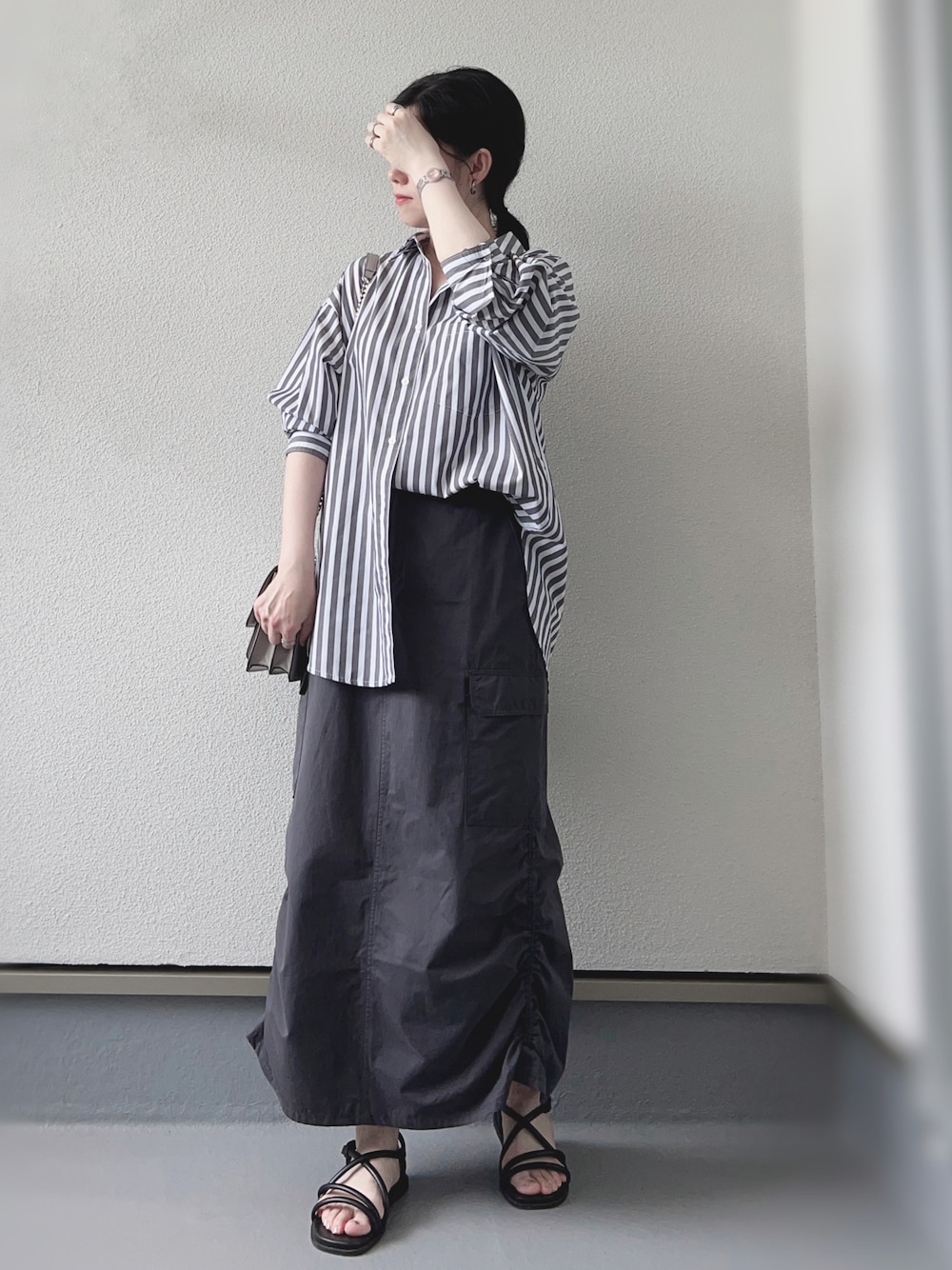 ご覧いただきありがとうございます😊 グレーコーデ🩶 🏷️GU 【ストライプオーバーサイズシャツ】 【カーゴロングスカート】 いいね、お気に入り、フォロー、フォルダインとても励みになります✨ いつもありがとうございます☺️