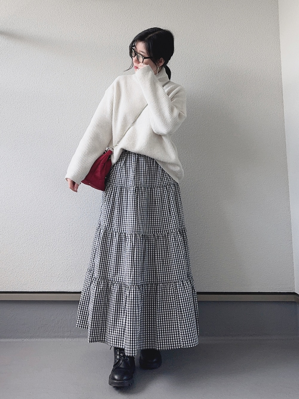 ふんわりとしたAラインシルエットが可愛い新作ギンガムチェックスカート★⭐︎ 軽やかな素材とウエストゴムで着心地も◎ 🏷️GU 【ティアードマキシスカート】 カラー:88 BLACK サイズ:L ホワイトニットとシンプルな大人カジュアルコーデ🤍🖤 UNIQLO&GUアイテム詳細はStyleHintでご確認いただけます⭐︎ プロフィールから飛べます✈︎ そちらもご覧いただけますと幸いです☺️ いいね、お気に入り、フォローとても励みになります✨ いつもありがとうございます❣️