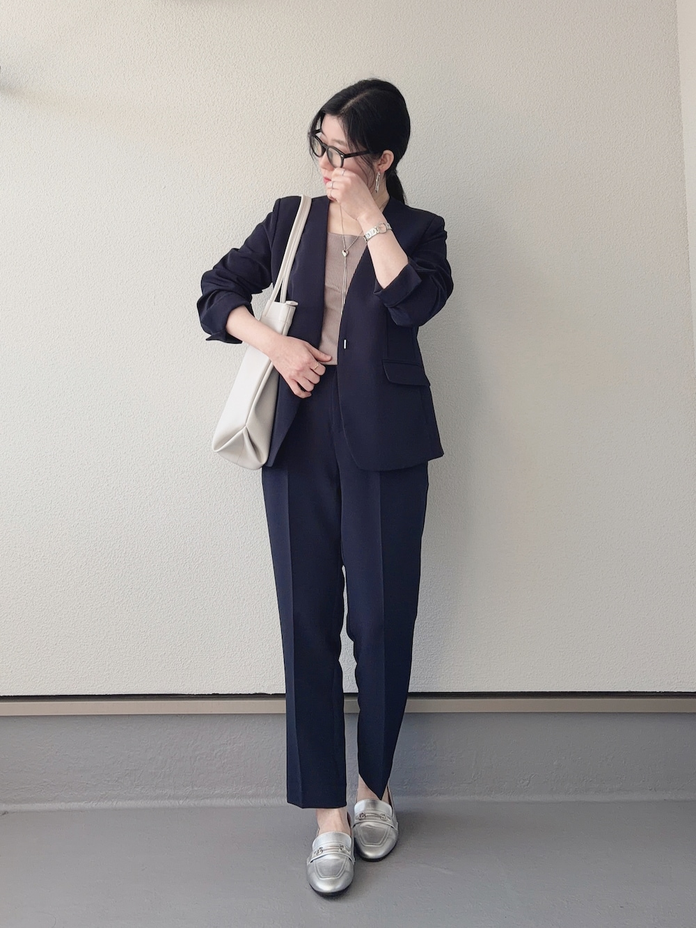 シルエットがきれいなノーカラージャケットとテーパードパンツでセットアップコーデ⭐︎ 伸縮性の良い素材で着心地も◎ 家庭で洗濯でき、手入れが簡単なのもとても嬉しいポイント👏🏻 セレモニー用にもちろん、デイリー通勤用にもぴったりの着回し優秀アイテム💫 いいね、お気に入り、フォローとても励みになります✨ いつもありがとうございます❣️