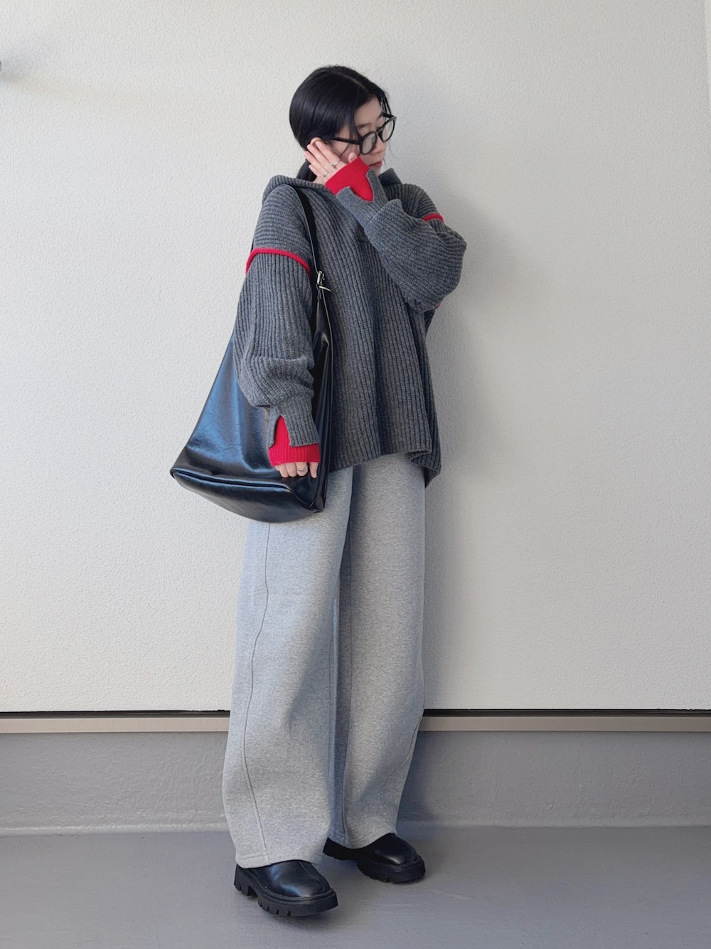 haruのニット/セーター「【ZOZO限定アイテム】畦編配色レイヤードヘンリーパーカー」を使ったコーディネート