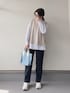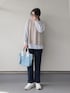 レイヤードスタイルが簡単に決まるニットベストとブラウスセット、 伸縮性の良いテーパードパンツと 楽ちん着痩せコーデ⭐︎ 色味が可愛いブルートートバッグでコーデに差し色を🩵 いいね、お気に入り、フォローとても励みになります✨ いつもありがとうございます❣️