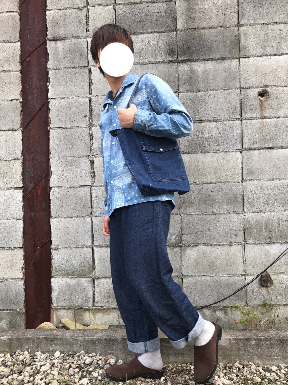 フリークスストアの可愛いバンダナ柄のシャツを見つけて即購入⭐️ あえて同系色の色のワイドデニムと合わせて、ブラウンで締め色にして見ました👍