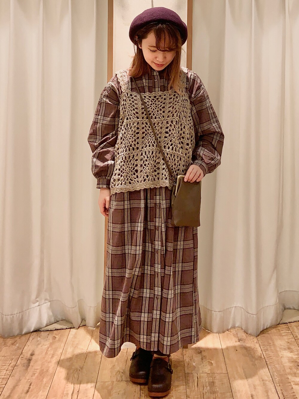 ご覧いただきありがとうございます😊 こちらのワンピース、丈感が少し短く色も可愛いので買ってしまいました😁 ハリ感がある綿ですが、着てみると思ったより柔らかくあまり気にならないです! インナーが透けずに1枚で着られる便利アイテム✨ 35th記念アイテムのニットベストもほっこり感があってナチュラルに仕上がります!