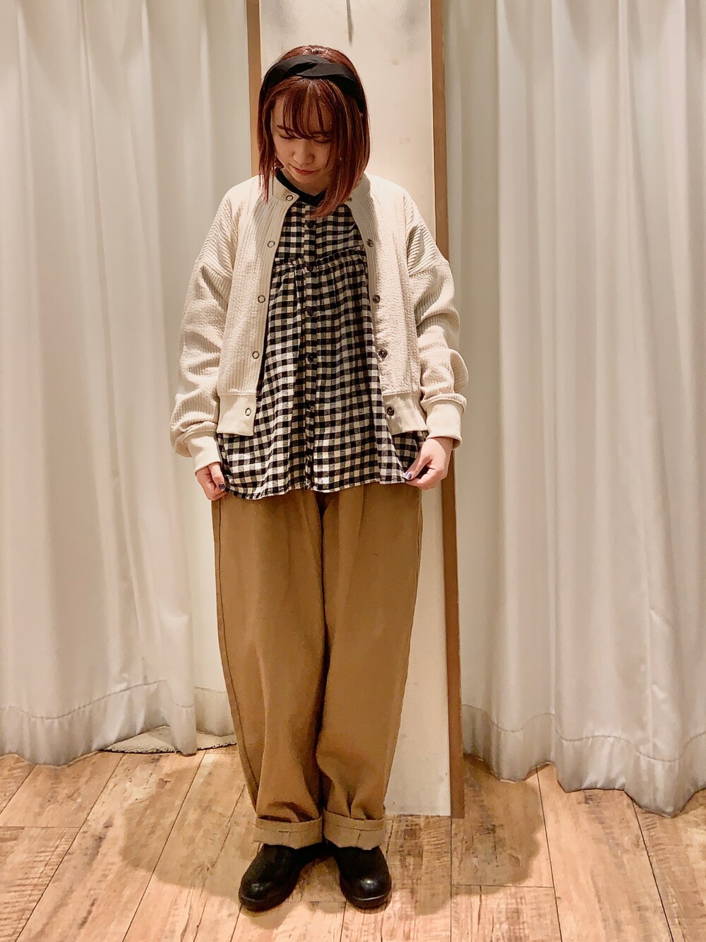 ご覧いただきありがとうございます😊 店内では先行セール開催中! 人気アイテムも30%OFFからご用意しております♪ 大人気のクレリックブラウスに 起毛リブカーディガンを合わせたレイヤードコーデ。 カーディガンの丈感が少し短めなので 胸元ギャザーのふんわりブラウスも スッキリ着られます✨ スナップボタンで脱ぎ着しやすいのもポイント! ベーグルパンツは裾に向かって細くなり、 ダボつきすぎないので 低身長さんにもオススメです☺️