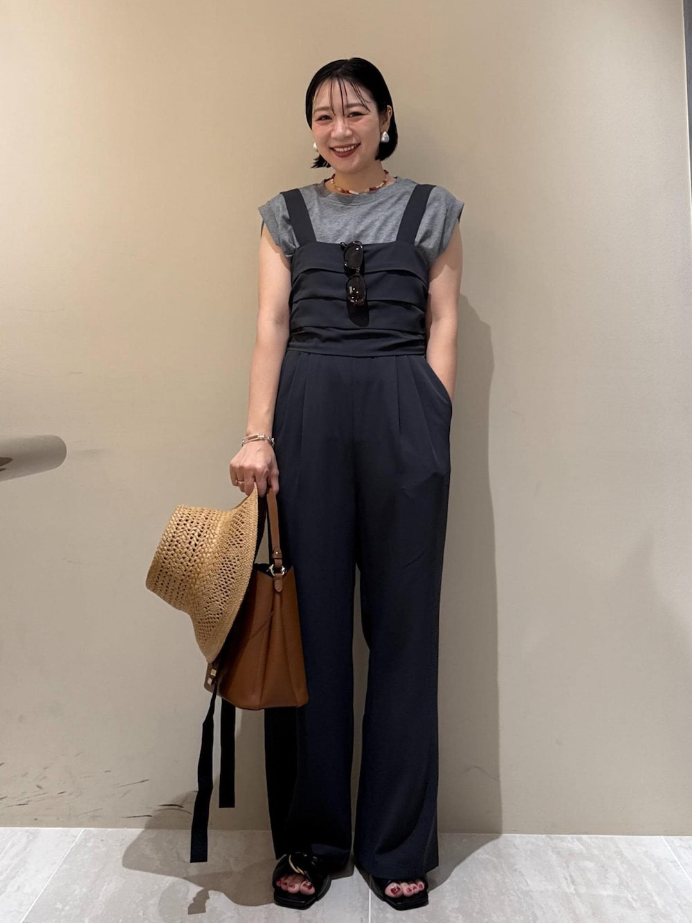 ご覧頂きありがとうございます♪ エスト店HARUNAです♡ WEB店舗限定のノースリーブトップスとロンパースで夏のグレーコーデに♪ チャコールグレーのロンパースは落ち感ある素材でスタイルアップが叶い、サラッとした生地でとても涼しいです! 【Instagram】 ーーーーーーーーーーーーーーーーーーー @haru0909_k 気軽にフォローしてもらえると嬉しいです♪ かっこいいから、キレイめまで、、多系統なスタイリングをアップしております! ⚠︎品番ない物は私物です。 【information】 お気に入りの投稿やスタッフをハートボタンでタップ‼︎ お気に入りコーデをすぐ見返せます♪ ぜひお試しください♪