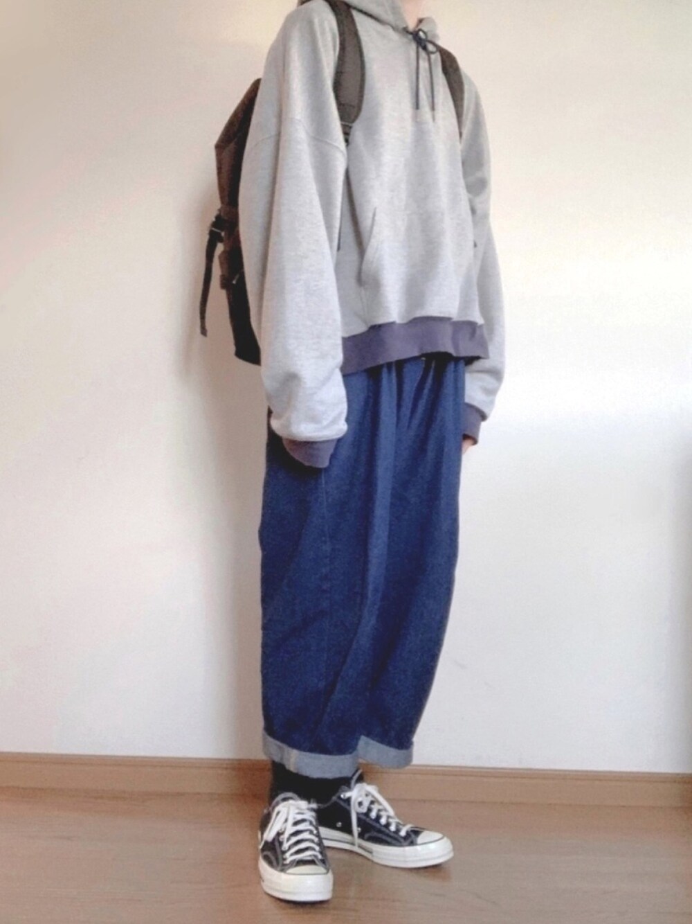 見て頂きありがとうございます😊 全体的にゆるっとしたコーデですが、パーカーの生地が薄手で丈が短いため、野暮ったく見えないのがポイントです。 外に出られなくて暇なんですが、お家で1人ファッションショーするのも結構楽しいです笑 皆さんもお家でそれぞれの楽しみを見つけてみて下さい😌