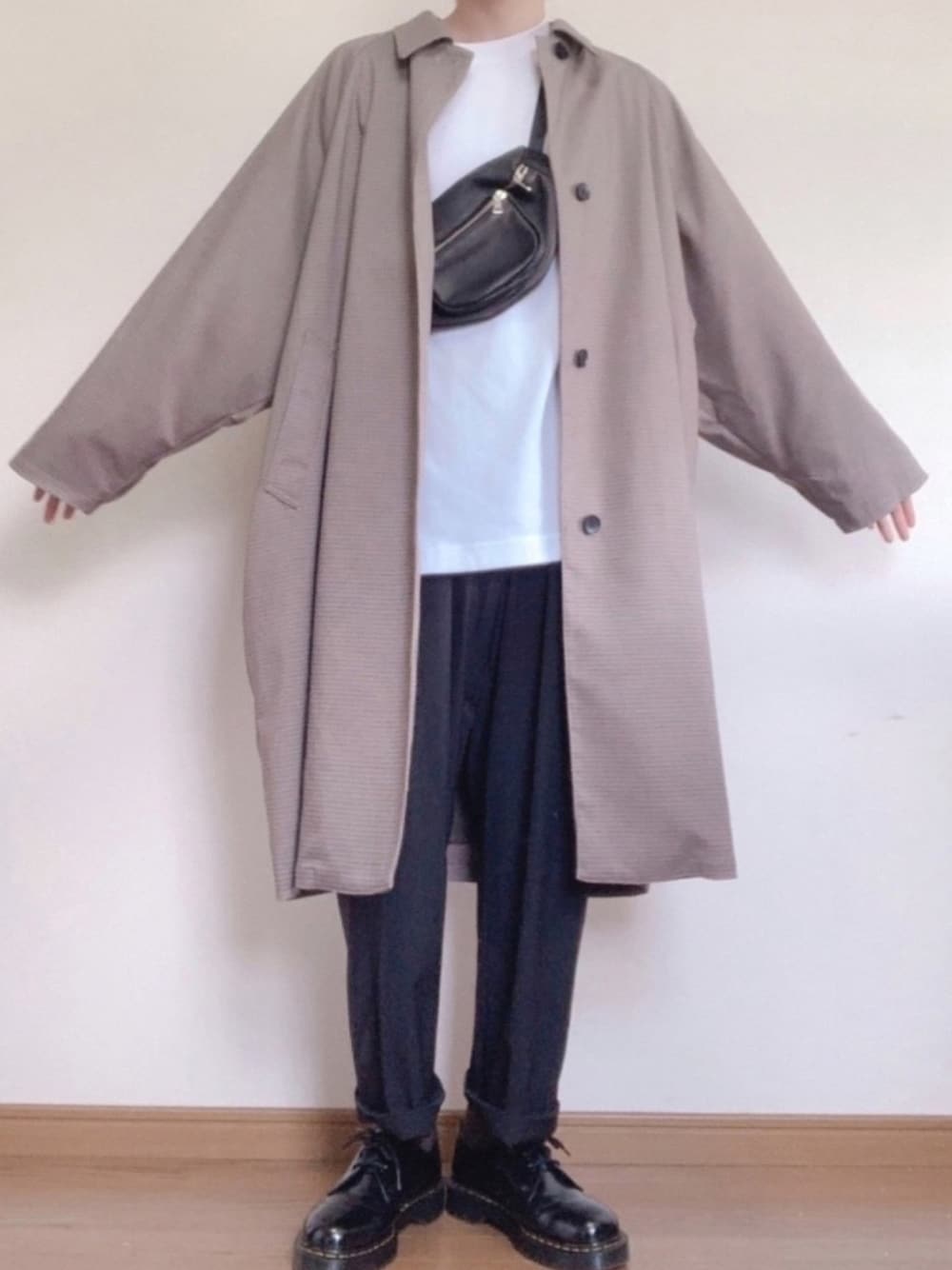 ルノのステンカラーコート「ドルマンスリーブビッグステンカラーコート(HARE)」を使ったコーディネート