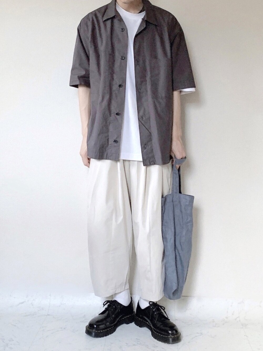 こんにちは☘️ モノトーンくすみコーデ トップスは前回の色違いです こちらも前回同様他のアイテムと合わせやすいくすみカラー、シルエットになってて僕好みです 全身remerで揃えてみたんですが、もう雑に組んでも大体オシャレになるのでおすすめですよ