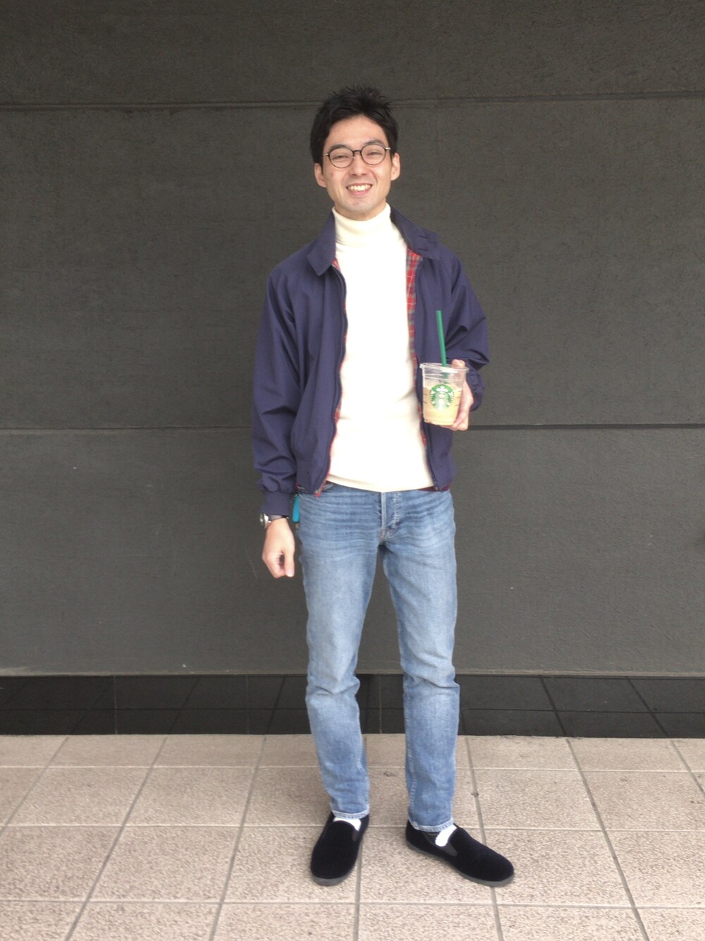 春は油断ならない。 バラクータのスウィングトップだけでは肌寒いかも、だけれどもキルティング・ジャケットには戻れない、そんな風に悩むことしばしばです。 今回は、タートルネックのニットを合わせることにしました(もっと寒い日には、中にダウンベストを着るという裏技もあります)。 季節感はもうひとつ、足元で表現しています。ぼくのは、同じkeptとはいえ、よく見るエスパドリーユとは異なり、スウェードのVANS型スリップ・オンです。 それから、H&Mのジーンズのシルエットも気に入っています。あえて、スキニーではなくスリムフィットを選んだら、ジャストでした。 春の小旅行。ロング・ドライブにぴったりのコーディネートになりました。 (娘にシャッターを押してもらったら、この表情ですよ。恥ずかしい。みなさん、いちばんのおしゃれは笑顔ですよ!なんてね。)