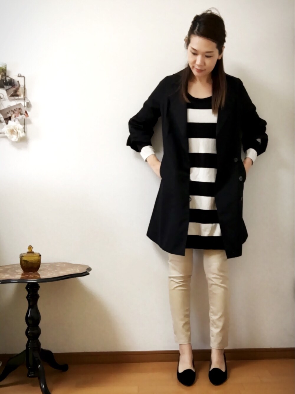 ※バックグラウンド変更※ H&M➡︎ボーダーワンピース K➡︎スプリングコート GU➡︎スキニーパンツ salus➡︎パンプス ❀閲覧ありがとうございます❀