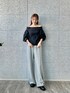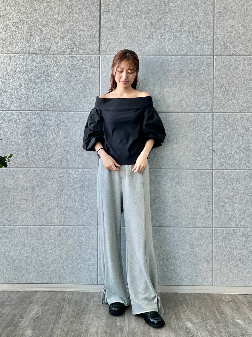 ●puff glow off top スポーティな素材感の伸縮性のあるトップス。 オフショルですがそこまで肌が見えないので着やすいです。 ショート丈でインでもアウトでも使い勝手がいいです。 ●ribbon sweat pants カジュアルなスウェットパンツもリボンディテールがアクセントに。 細すぎず太すぎないシルエットでリラックス感がありつつも野暮ったく見えません。 ウエストがゴムなので普段通りのサイズで◎。 身長に合わせて選んだら良さそうです。164㎝でSサイズでちょうどいいです。