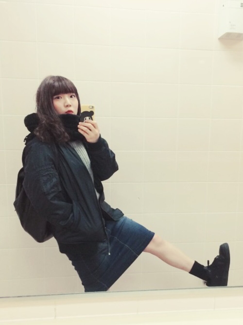 ハタチ MA-1/UNIQLO knit/NATURAL BEAUTY BASIC skirt/UNIQLO snikers/NIKE