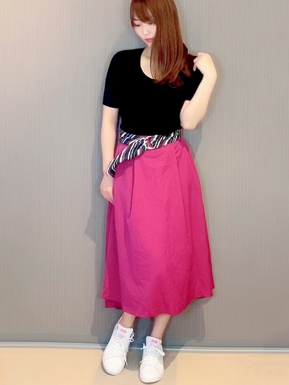 おはようございます☺✨ いつも見ていただきありがとうございますʚïɞ.•*¨*•.¸¸♬ よろしければいいね、お気に入り、フォローお願いします。 ZARAのトップスにINGNIの #フレアスカート 合わせました♡ スニーカーでカジュアルスタイル。