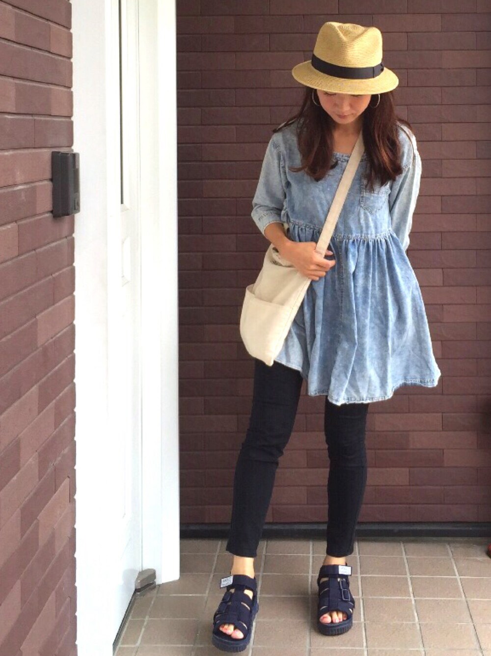 2〜3年前に買ったワンピ☆ 短めなので今回はスキニー履きました フープピアスは300円🎶 ほんと最近 このサンダルばっかり…w