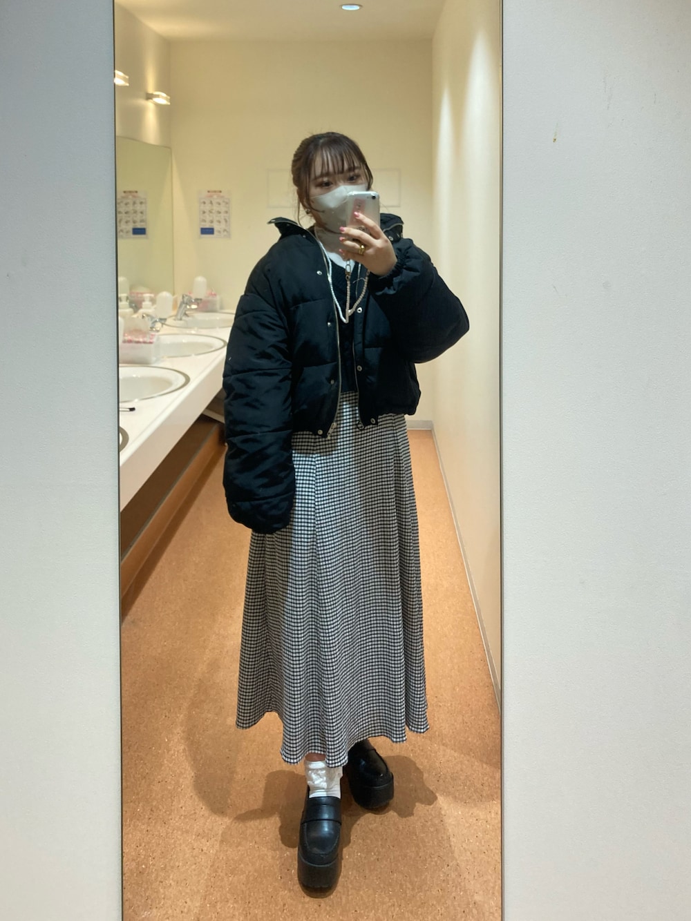似たようなコーデたけど好き♡ 今日も大学コーデ📚✍🏻 夏服のを着回し!!全然着れる!! ワンピースの形がとっても嫌いだから着膨れしないでスッキリ見せてくれる🙃 寒い時期はダウンジャケットとハイネックに頼っちゃうね〜!!! これに黒のカチューシャして黒か赤のカバン持つのも可愛いね!!!♡