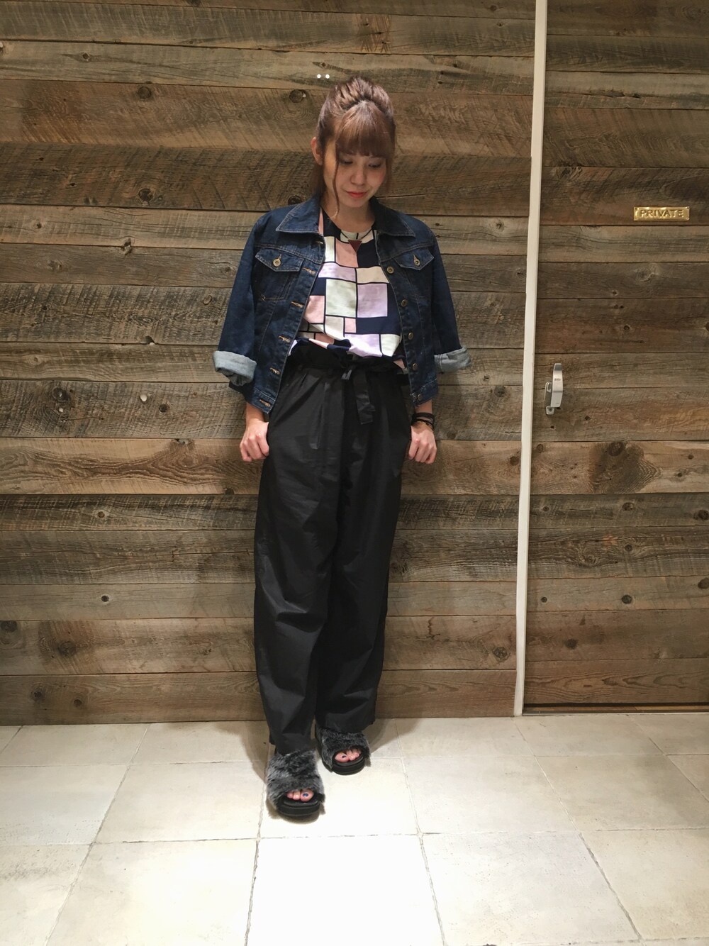 いつものトップスもデニムジャケットを羽織るだけで、秋っぽさを💜