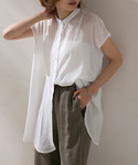 rectangleのブザムシアーシャツ✨ 人気のオーバーサイズシアーシャツと同素材で、より夏らしく着られます! フロントの重なりがスリットのような新鮮なデザイン☺️ ゆとりのあるサイズ感でヒップが隠れる着丈なので、体型カバーにも◎ Instagram→@haru_wear