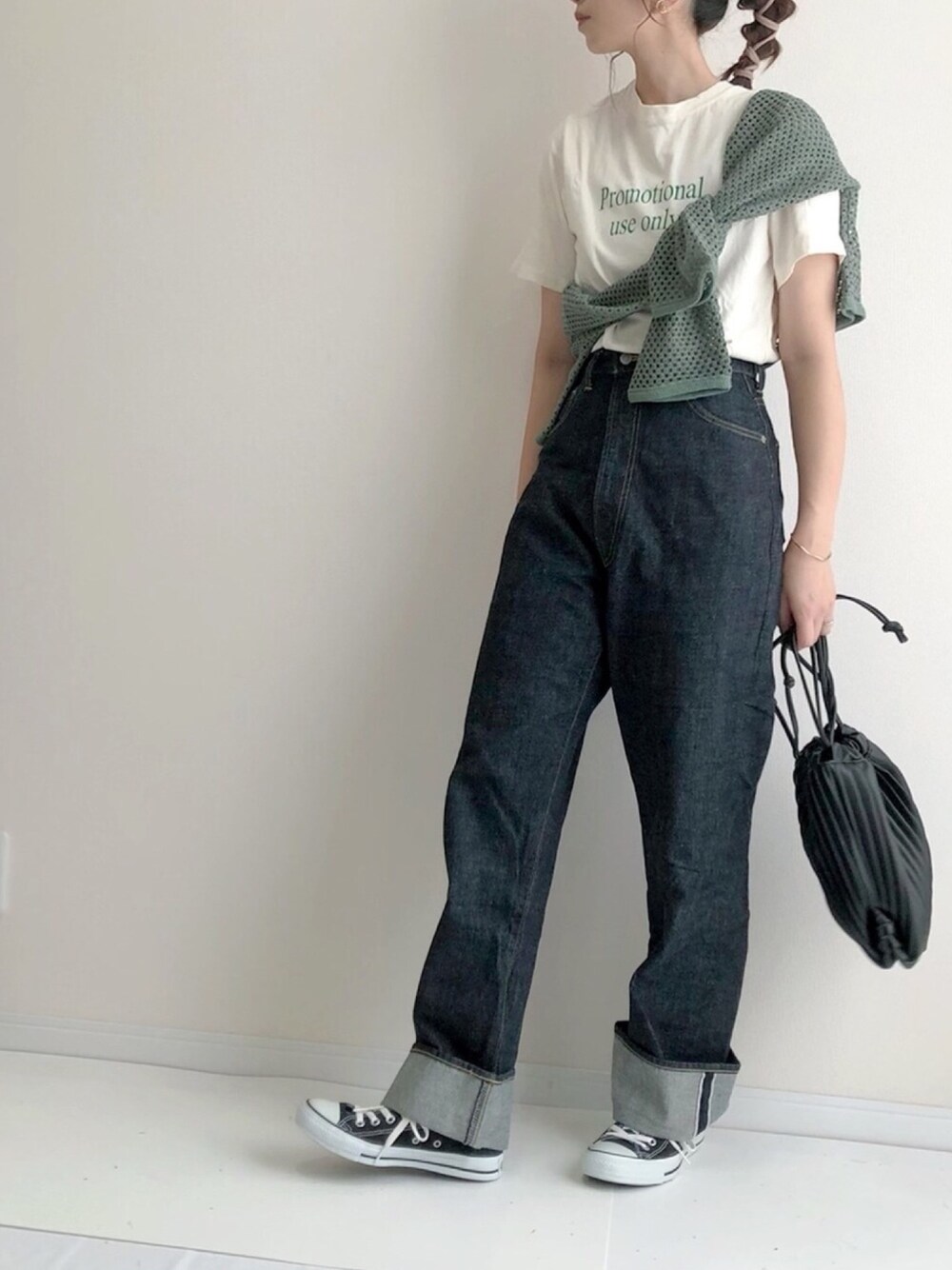 haru のカーディガン/ボレロ「パンチングニットカーディガン」を使ったコーディネート