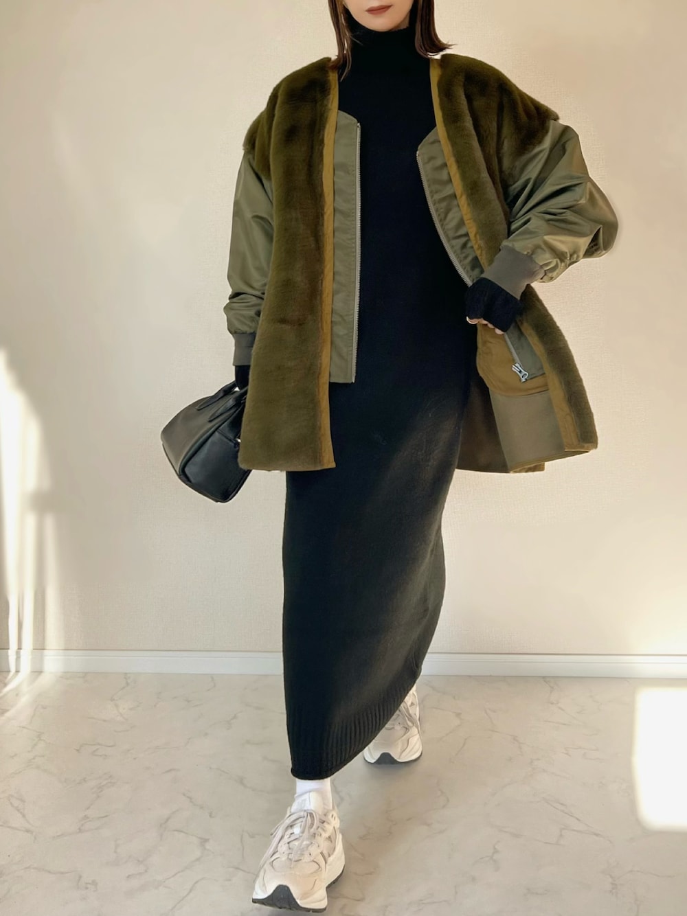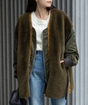 haru のノーカラージャケット「【新色追加】【etsinta/エシンタ】ファー切替ジャケット」を使ったコーディネート