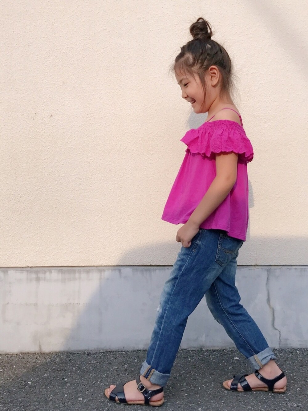 ちょうどドラフトが始まる前に買ったトップス♡ 可愛い色に一目惚れ❤ レースもめっちゃ可愛い❤ サンダルはムスメちゃんが一目惚れしてました😆 今日は全身GAPで*\(^o^)/*