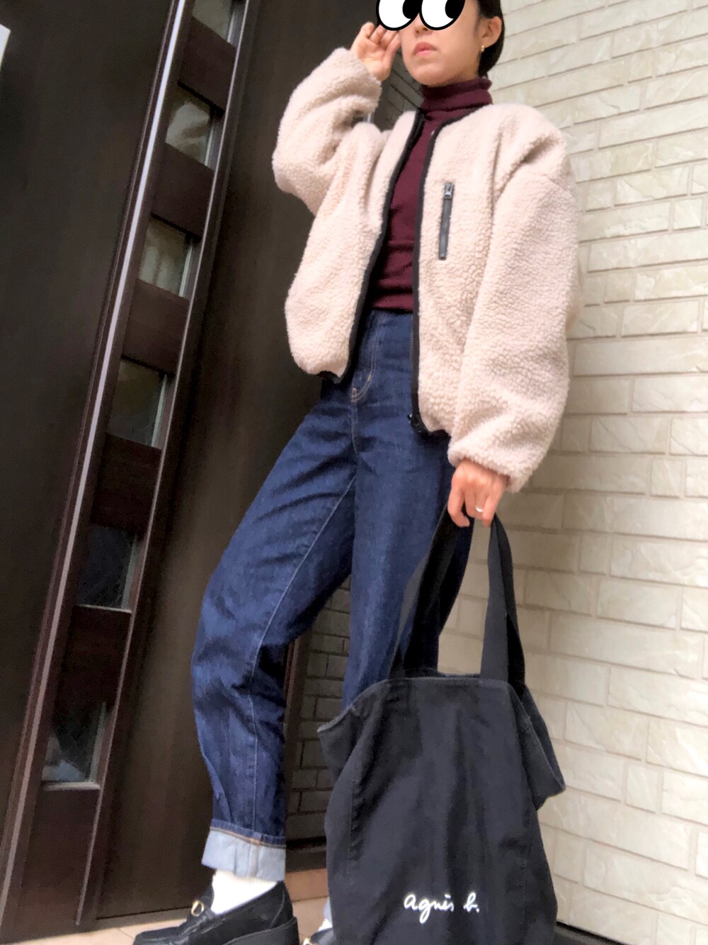 やま家のブルゾン「ゆるもこボアに癒され。ビッグシルエットボアブルゾン」を使ったコーディネート