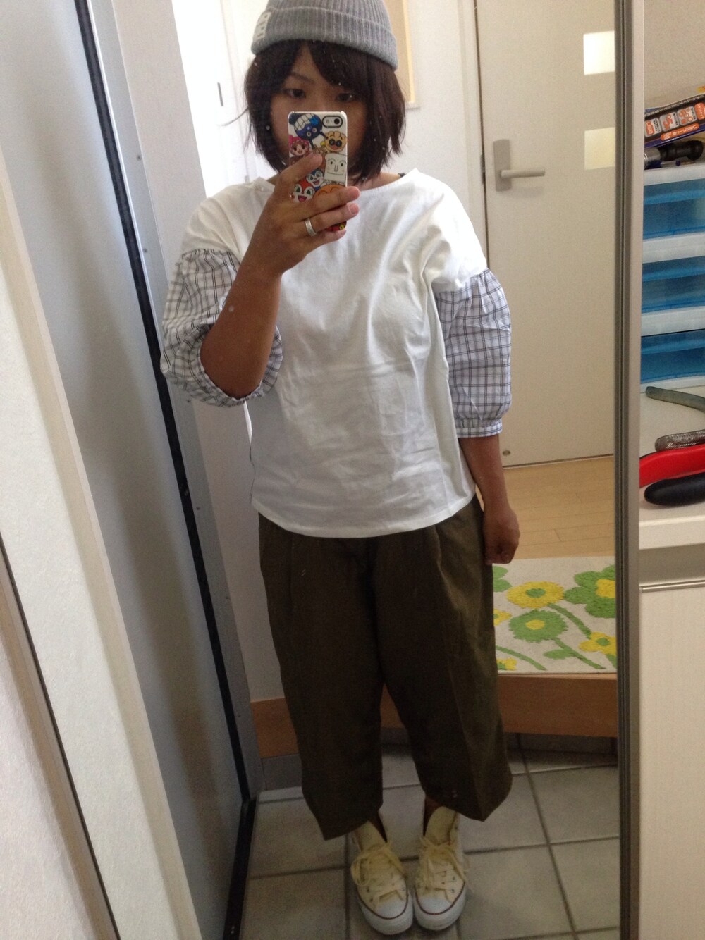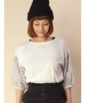 ●ひろみ●のトップス「【A/W】袖チェック切替シルケット天竺プルオーバー」を使ったコーディネート