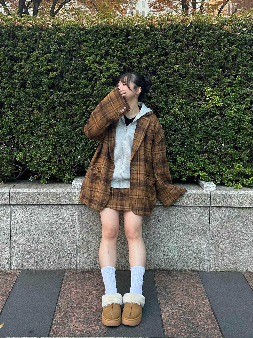 キレイめになりがちなセットアップをグレーパーカーと合わせてカジュアルダウンさせることで着やすくなる( ᴖ_ᴖ )♩ 上から下までかわいすぎる…🤍