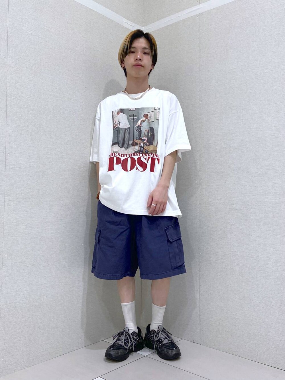 ■【THE SATURDAY EVENING POST】コラボ/プリントTシャツ →Mサイズ着用 ■ヴィンテージライクデニム/ミリタリーカーゴショーツ →Sサイズ着用 instagram