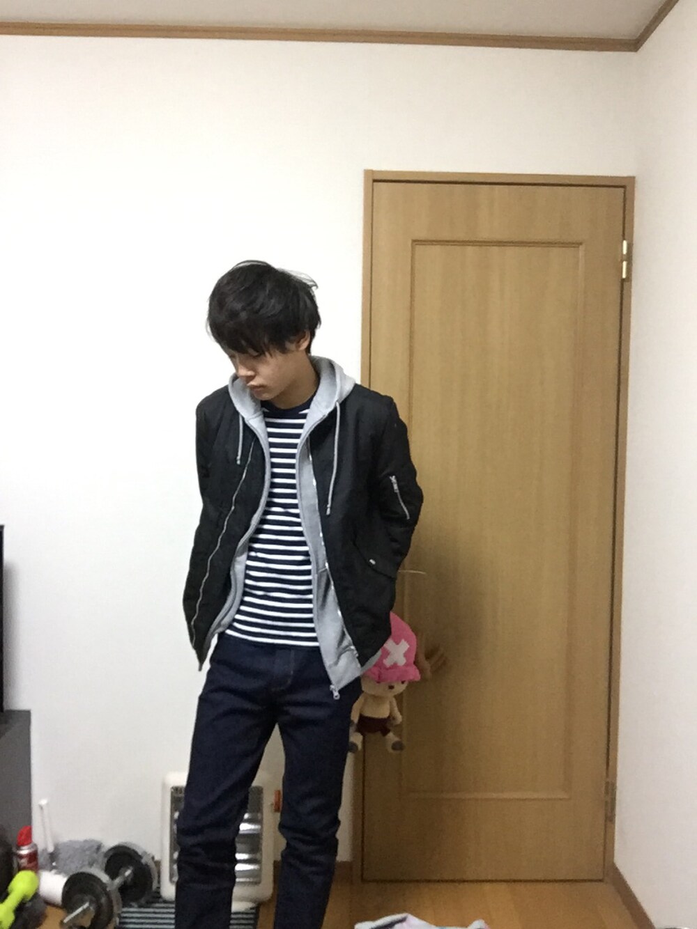 久し振りのwearの投稿。。 忘れてた訳じゃない!!!! 学校が忙しかったんだ!!!!!! ってことでパテッドMA-1を着てみました✌️ 普通のMA-1より少し厚手なんですが冬にはもってこいのアウターです! 厚手なんですが中にパーカーを着てもあまり着ぶくれしないのでいい感じです! 中にZIPパーカーを着ることで奥行きでてシンプルですがいいと思います👍💥 このスキニーのデニムはレイジで買ったものです( ̄▽ ̄) すごく履きやすく着心地良いので長く使いたいです😁 でわここらへんで。。( ´ ▽ ` )ノ