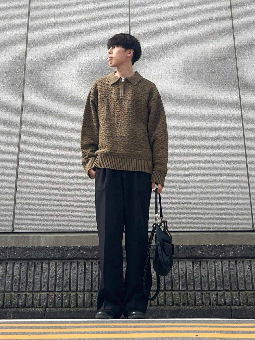 harutoのニット/セーター「Oversize half zip jacquard knit polo(reversible)/オーバーサイズハーフジップジャガードニットポロ」を使ったコーディネート
