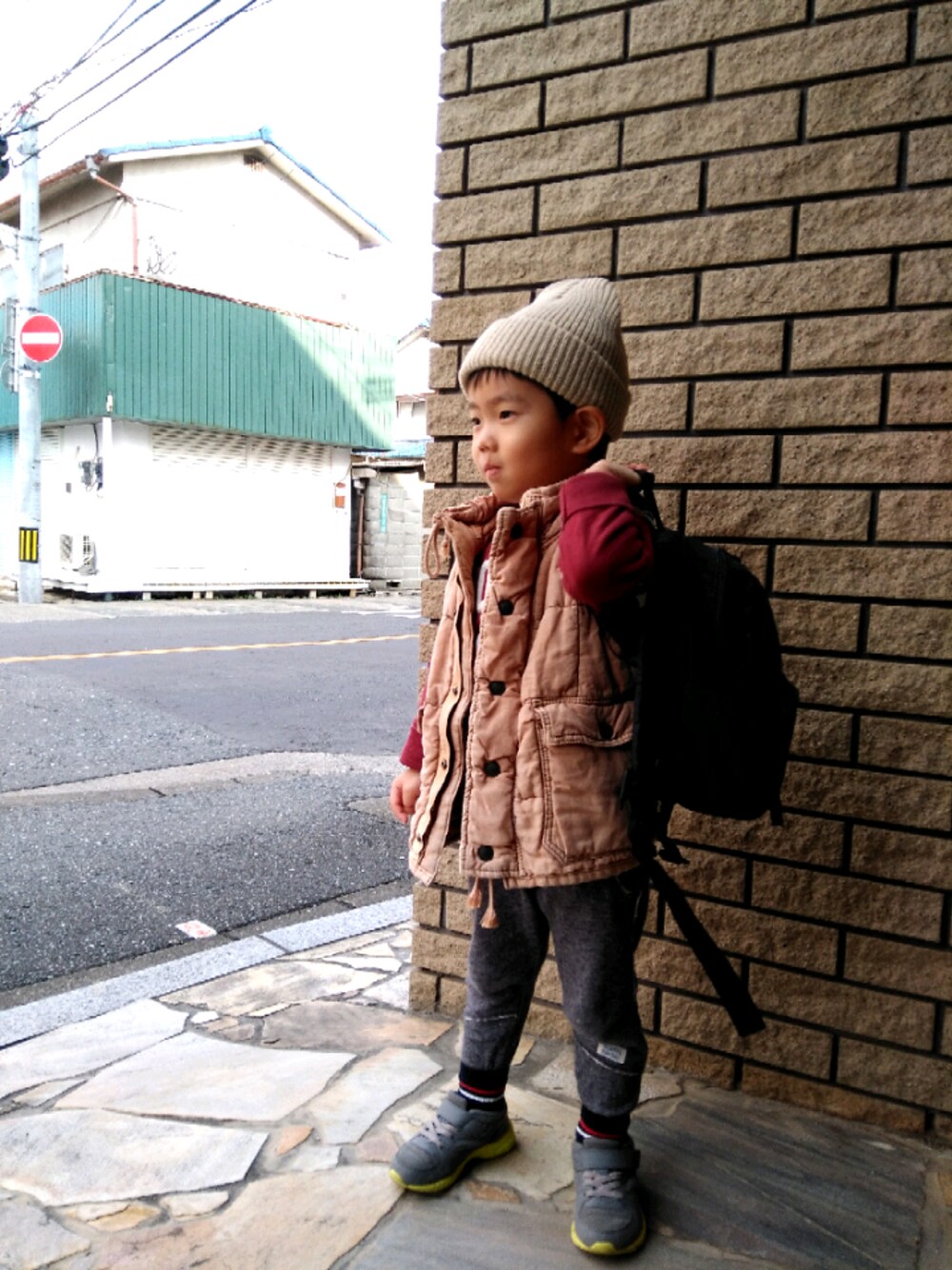 *2018.11.20 プレ幼稚園の日☻ 朝はだいぶひんやりしてきたので、今朝届いたばかりのニット帽を早速。 迷って決めたベージュが可愛い♡