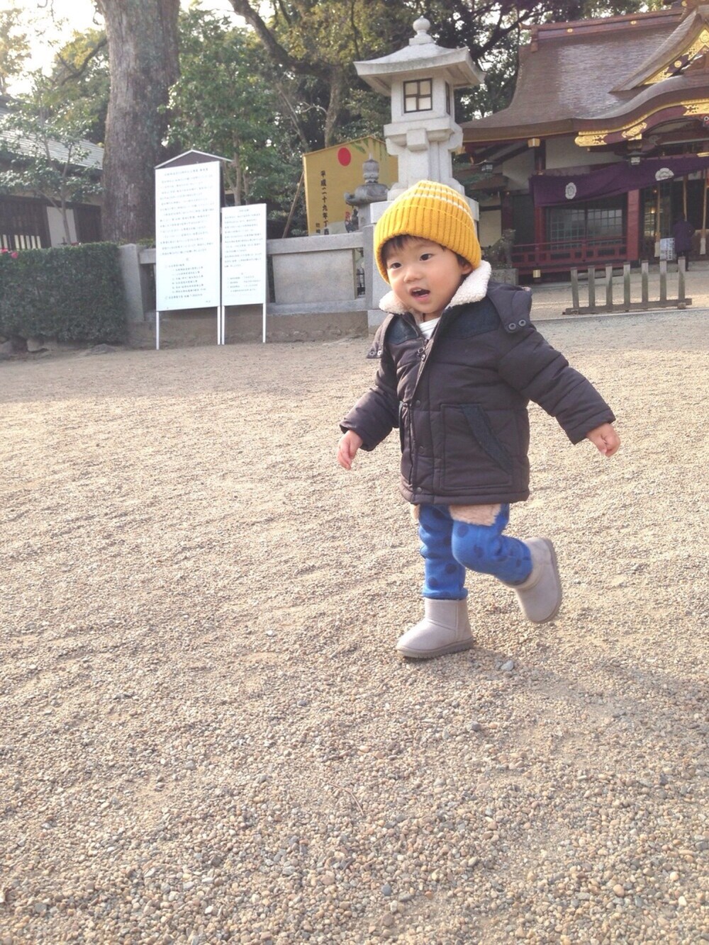 *毎日の遊び着* 2017.1.7 落ち着いた色味のジャケットにイエローとブルーを合わせて◡̈♥ まだ初詣に行ってなかったので、近所の神社へお参りに行ってきました。 お散歩がてら歩いて行くので寒くないように、ニット帽×裏ボアジャケット×裏起毛ニットパンツ★ いいね♡、SAVE、 ありがとうございます(❁´◡`❁)