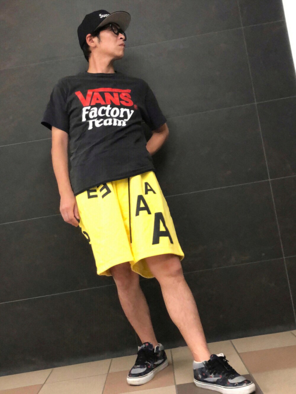 イエローのカラーパンツコーデ! ウィンダンシーに、 大好きなVANSのTと、スニーカーを合わせました✌️ やはり、イエローには、ブラックが合う😆