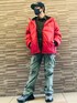 赤のダウンジャケットはGU×UNDERCOVER☀️🌏 インナーはプラスJのオーバーサイズシャツジャケットのカーキです🎶 メゾンキツネ🦊のキャップは子供っぽさが残るオシャレな感じが大好きです☀️ イメージは、 悪戯大好きな悪ガキがそのまま大人になったコーデ🎩✨💕