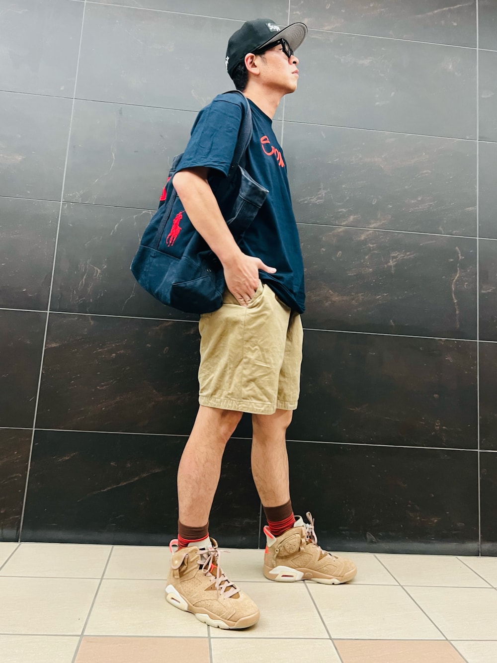 ネイビーとベージュ🌏🤎 この組み合わせも良いですね✨ トートの刺繍とTシャツのLOGO色もだけど、 UNIQLO×MARNIのソックスの色が上手い具合にハマってくれました✈️😄 Take care🇯🇵