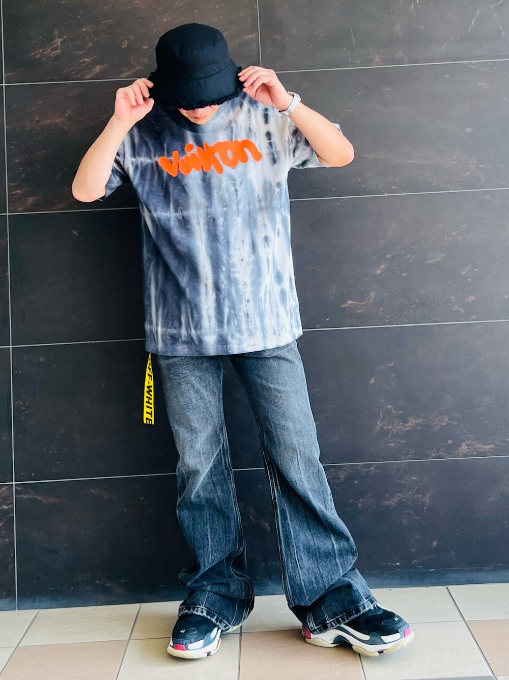 OOTD✨ 今日は、 LOUISVUITTON×BALENCIAGA🎩 バレンシアガのデニムは、ウィメンズの一番小さいサイズだけどこんな感じです! サイズ感👍です🌹 ビッグシルエット最高ですね😉