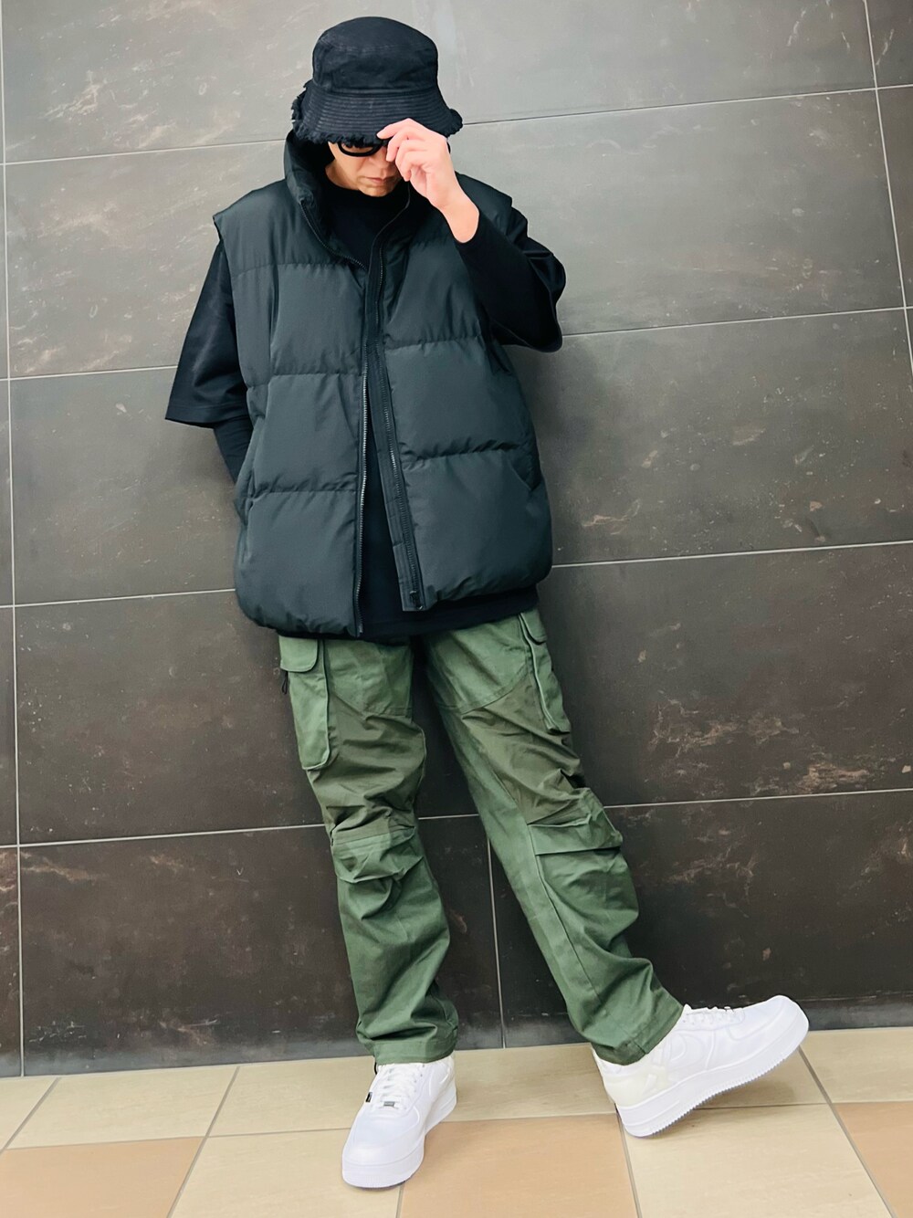 Long time no see✨ OOTD✨ バケットハット→WEGO ダウン→GU インナー→UNIQLO カーゴ→blacktailor スニーカー→エアフォースワン by undercover Thank you✈️