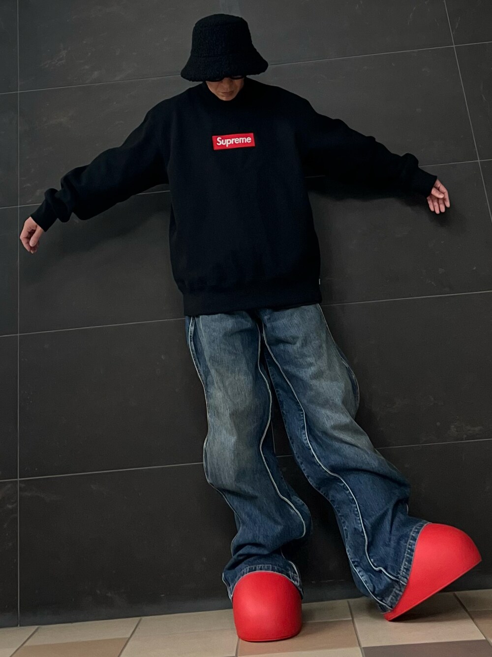 OOTD✨ バケットハット→古着 スウェット→supreme デニム →louisvuitton ブーツ→MSCHF Thank you🌈 Take care✌️